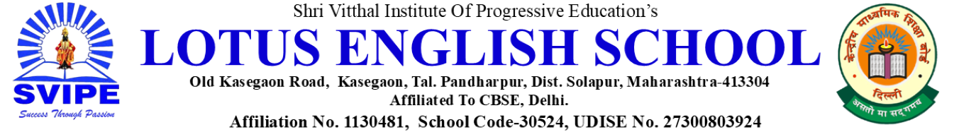 Lotus English School, Kasegaon, Pandharpur is a proud, mission-driven community providing a world-class education, celebrating the unique differences of each student, both as individuals and learners. We believe that powerful learning and teaching occur within a shared spirit of respect, fostering a passionate schooling experience renowned for its warmth, energy, and excellence. Here, everyone is valued, allowing both teachers and learners to fulfill their potential. We offer a balanced Phonics course that nurtures children to develop holistically. To us, the very purpose of quality education is character building. Teachers have a crucial role in shaping students into persons of excellence, serving as exemplary figures to inspire them to become assets to society and the nation. We believe every child should experience a sense of achievement and be encouraged to perform to their fullest ability, with emphasis placed on learning beyond academics.